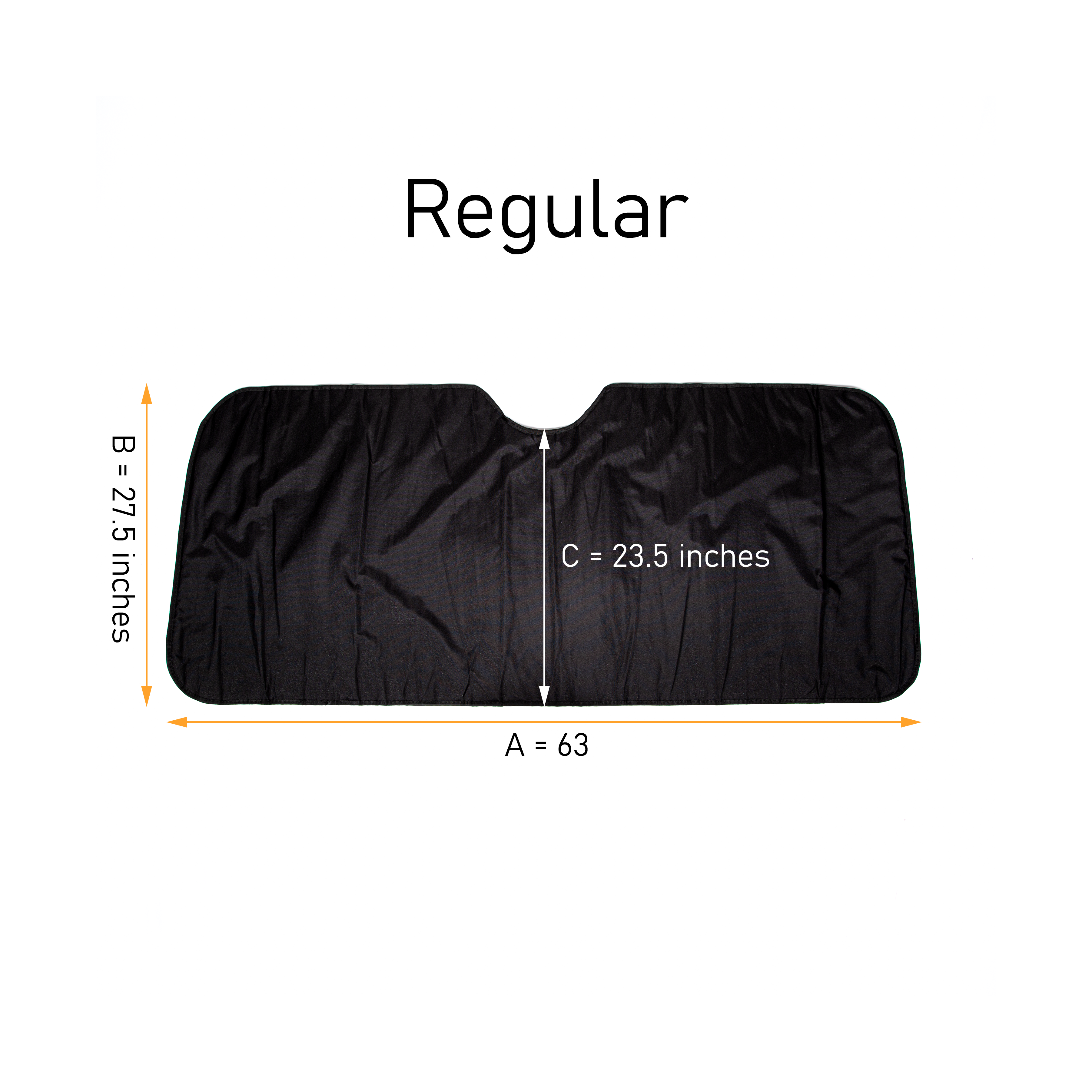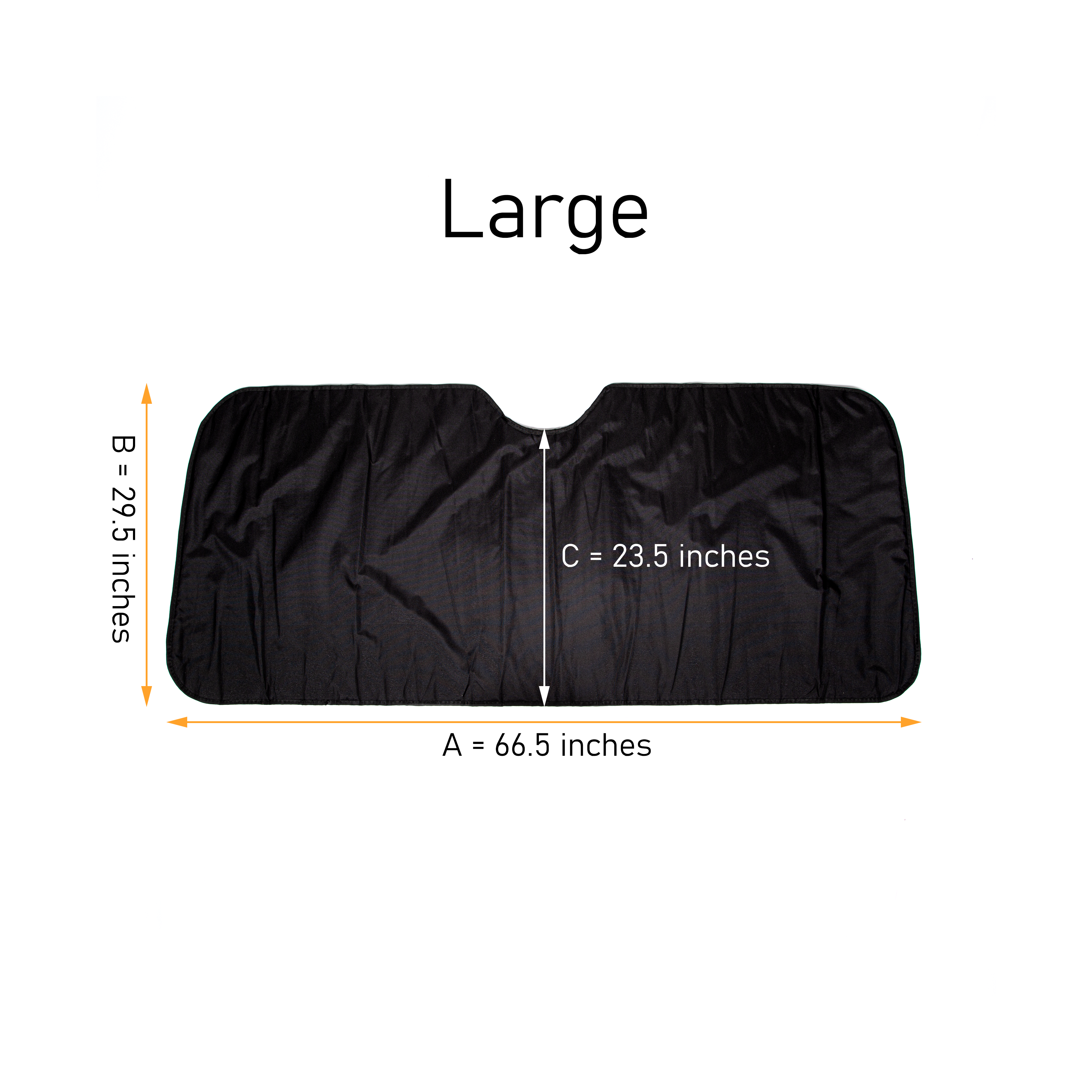 When choosing a size for your vehicle, prioritize on the B measurement. This length is the most important factor in determining how easily The Shield can be put up in your windshield. The sides of The Shield get folded over anyway to improve its stability, so having extra at the sides will not affect its fit in your windshield.